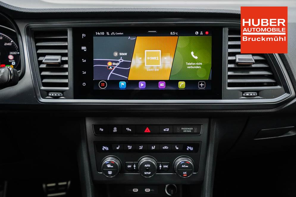 Beifahrersitz höhenverstellbar, Fahrersitz höhenverstellbar, Lederlenkrad, Lendenwirbelstütze vorne, Mittelarmlehne vorne, Sitzbezug Stoff, Sport-Schalensitze vorne, geteilt umklappbare Rücksitzlehne, Lenkrad höhenverstellbar, Ambiente-Beleuchtung, Beheizbares Lenkrad, Multifunktionslenkrad, Isofix, abgedunkelte Scheiben, 19 Zoll Alufelgen schwarz/silber, Dachreling schwarz, Stoßfänger in Wagenfarbe, Türgriffe in Wagenfarbe, ABS, Außenspiegel elektrisch einstell-/anklappbar, Fensterheber elektrisch, Klimaautomatik, Kopfairbags, Nebelscheinwerfer mit Abbiegelicht, Seitenairbags vorne, Servolenkung, Sitzheizung vorne, DCC, ESP, Wegfahrsperre, Zentralverriegelung mit Funk, Außenspiegel beheizbar, Beifahrerairbag, Fahrerairbag, Parkpilot hinten, Parkpilot vorne, Reifendruckkontrolle, Regensensor, Lichtsensor, Digital Cockpit, Anhängekupplung schwenkbar, Tempomat Abstand ACC, Fernlichtassistent, Notbremsassistent, Spurhalteassistent, Totwinkelassistent, Verkehrszeichenerkennung, LED-Scheinwerfer, LED-Tagfahrlicht, Pannenset, Rückfahrkamera, Elektrische Heckklappe inkl. Virtual Pedal, Kessy, StartStopSystem, Winterpaket, Berganfahrassistent, Müdigkeitswarnsystem, Notrufsystem, Schaltwippen, 360-Grad-Kamera, Geschwindigkeitsbegrenzer, Android Auto, Apple Carplay, Freisprecheinrichtung, Induktionsladestation, Touchscreen, USB Typ-C, Radio DAB, Bluetooth, Bordcomputer, Navigationssystem, Full Link, Sitzbezug Dinamica, 5 Jahre bis max. 100.000km Herstellergarantie, LED-Rückleuchten, 8 Lautsprecher, Fahrprofilauswahl, Dachhimmel schwarz, Travel Assist, Stau- und Notfallassistent,