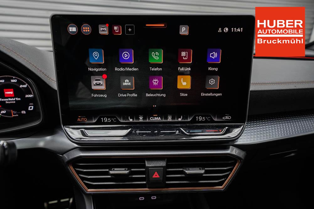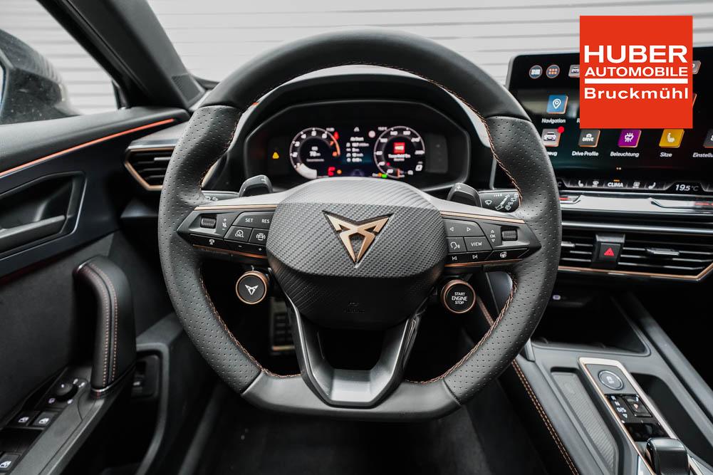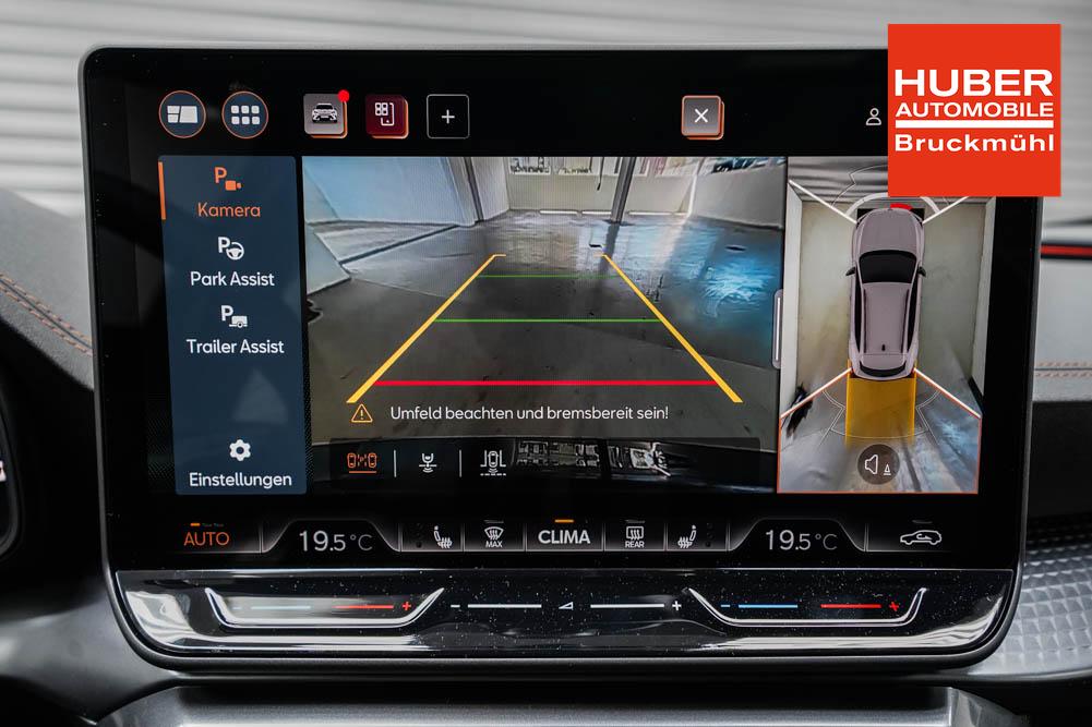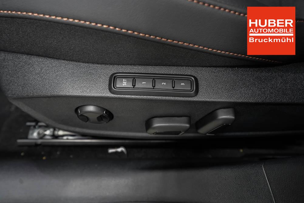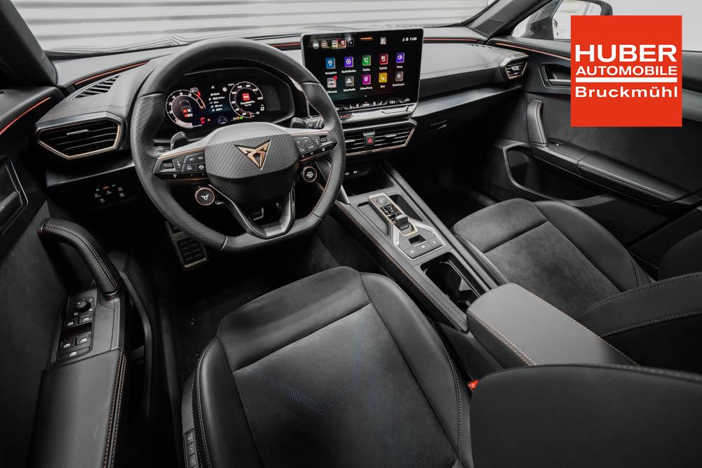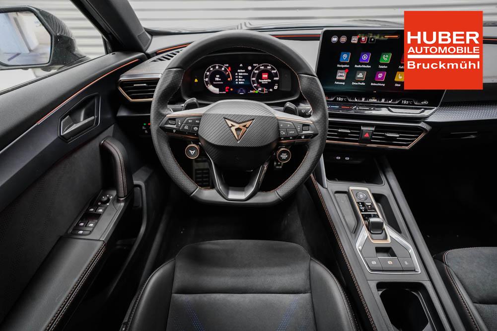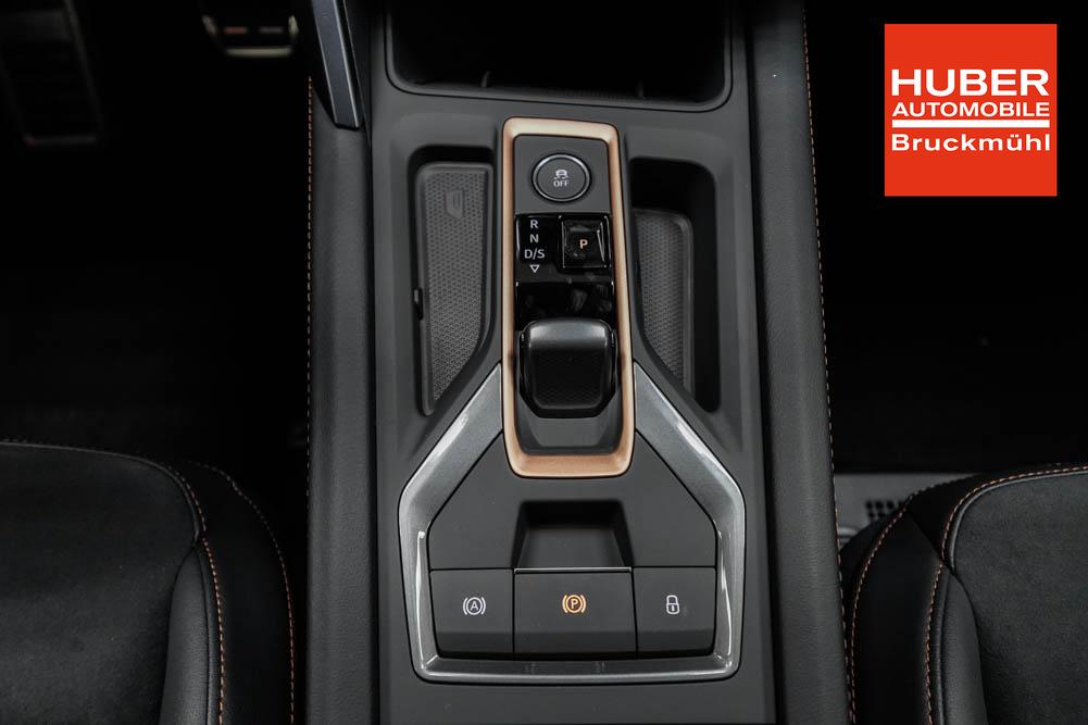 Beifahrersitz höhenverstellbar, Fahrersitz höhenverstellbar, Lederlenkrad, Lenkrad höhenverstellbar, Sitzbezug Dinamica, Elektrisch verstellbarer Fahrersitz mit Memory, Beheizbares Lenkrad, Multifunktionslenkrad mit Satellitentasten, Isofix, abgedunkelte Scheiben, 19 Zoll Alufelgen Sandstorm Kupfer, Dachreling schwarz, ABS, Alarmanlage, Außenspiegel elektrisch, Fensterheber elektrisch, Schiebedach, Seitenairbags, Servolenkung, Sitzheizung vorne, DCC, ESP, Wegfahrsperre, Außenspiegel beheizbar, Beifahrerairbag, Fahrerairbag, Parkpilot hinten, Parkpilot vorne, Reifendruckkontrolle, Digital Cockpit, Anhängekupplung schwenkbar, Tempomat Abstand ACC, Fernlichtassistent, Spurhalteassistent plus, Totwinkelassistent, Verkehrszeichenerkennung, LED Matrix Scheinwerfer, LED-Tagfahrlicht, Rückfahrkamera, Intelligent Park-Assistent, Panoramadach, Elektrische Heckklappe inkl. Virtual Pedal, KeylessEntry, StartStopSystem, Notrufsystem, Klimaautomatik 3-Zonen, 360-Grad-Kamera, Freisprecheinrichtung, Induktionsladestation, USB, Bluetooth, Bordcomputer, Radio-Navigationssystem, Schalensitze vorne, Cupra Full Link, variabler Ladeboden, erweiterte Herstellergarantie 5 Jahre/100.000km, Exit Assist, Stauassistent, Pre-Crash,