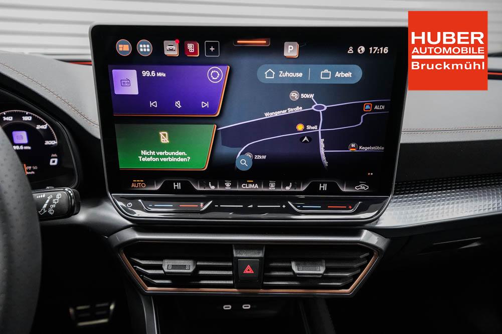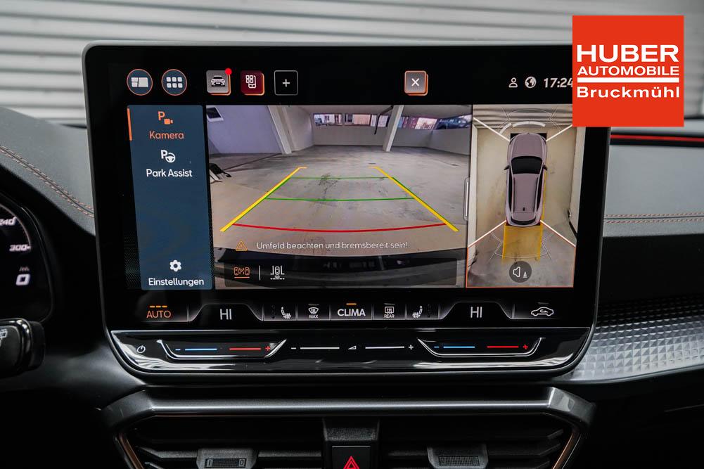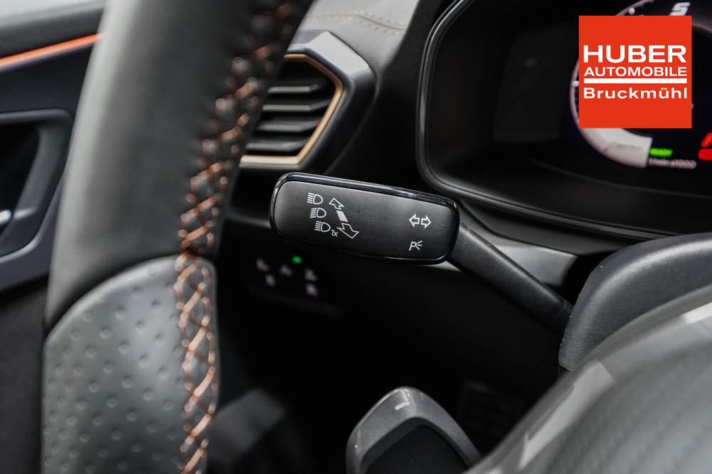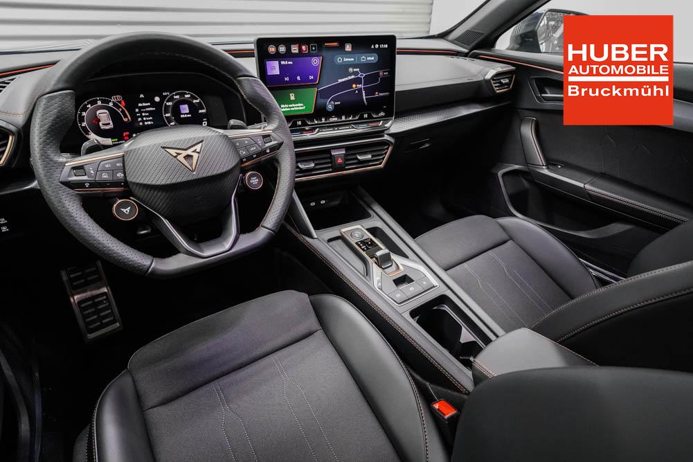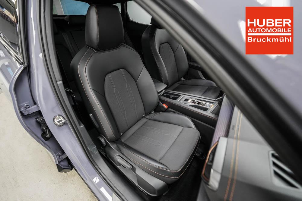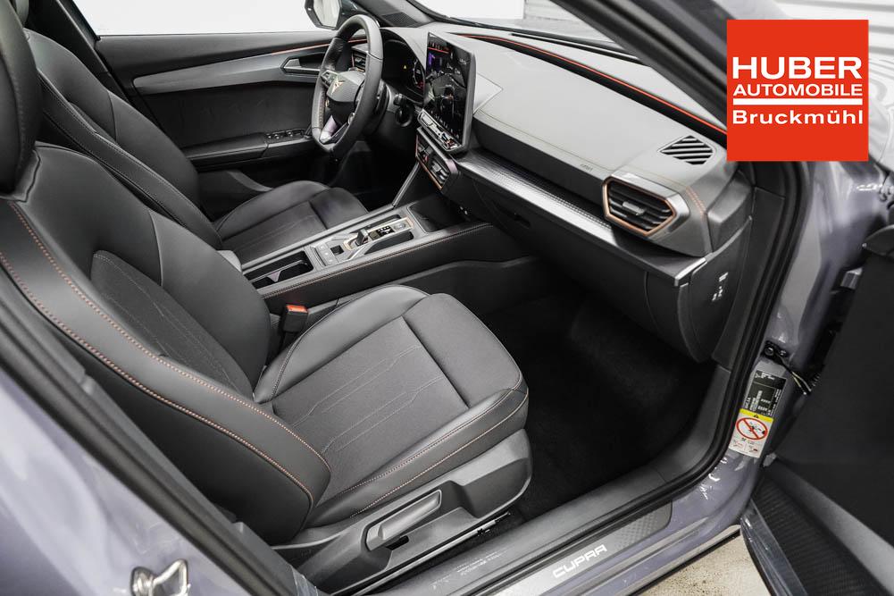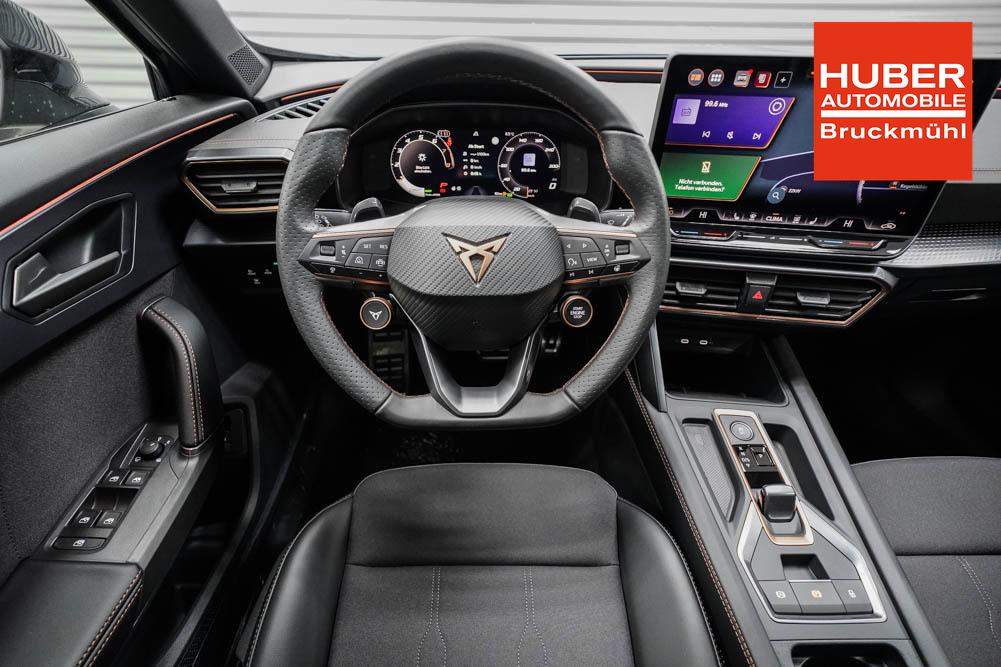 Beifahrersitz höhenverstellbar, Fahrersitz höhenverstellbar, Lederlenkrad, Lendenwirbelstütze, Mittelarmlehne vorne, Sitzbezug Stoff, Gepäckraumabdeckung, geteilt umklappbare Rücksitzlehne, Lenkrad höhenverstellbar, Smart Wraparound Interieur Light, Beheizbares Lenkrad, Multifunktionslenkrad mit Satellitentasten, Isofix, Isofix Beifahrersitz, abgedunkelte Scheiben, 19 Zoll Alufelgen Sandstorm, Dachreling schwarz, ABS, Alarmanlage, Außenspiegel elektrisch, Fensterheber elektrisch, Kopfairbags, Nebelscheinwerfer, Seitenairbags, Servolenkung, Sitzheizung, DCC, ESP, Wegfahrsperre, Außenspiegel beheizbar, Beifahrerairbag, Fahrerairbag, Parkpilot hinten, Parkpilot vorne, Reifendruckkontrolle, Lichtsensor, Digital Cockpit, Tempomat Abstand ACC, Spurhalteassistent plus, Totwinkelassistent, Verkehrszeichenerkennung, Cupra HD Matrix LED Ultra Scheinwerfer, Tagfahrlicht, Rückfahrkamera, Intelligent Park-Assistent, Elektrische Heckklappe inkl. Virtual Pedal, KeylessEntry, StartStopSystem, Innenspiegel automatisch abbl., Müdigkeitswarnsystem, Notrufsystem, Klimaautomatik 3-Zonen, 360-Grad-Kamera, Geschwindigkeitsbegrenzer, Android Auto, Apple Carplay, Freisprecheinrichtung, Induktionsladestation, Sprachsteuerung, USB, Radio DAB, Bluetooth, Bordcomputer, Radio-Navigationssystem, Full Link, Cupra Full Link, variabler Ladeboden, erweiterte Herstellergarantie 5 Jahre/100.000km, Exit Assist, Stauassistent, Pre-Crash,