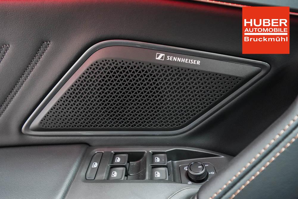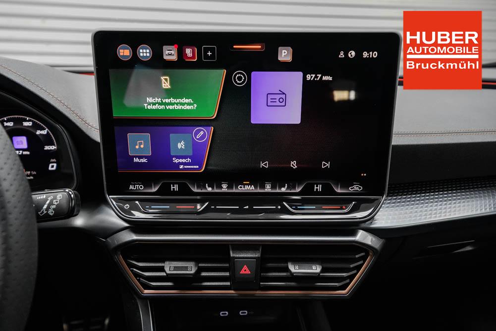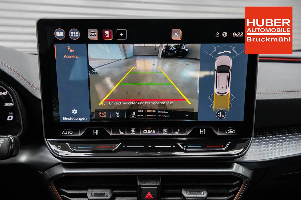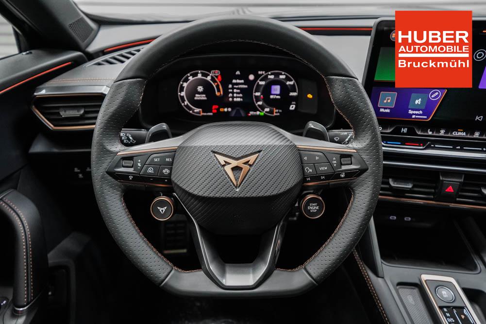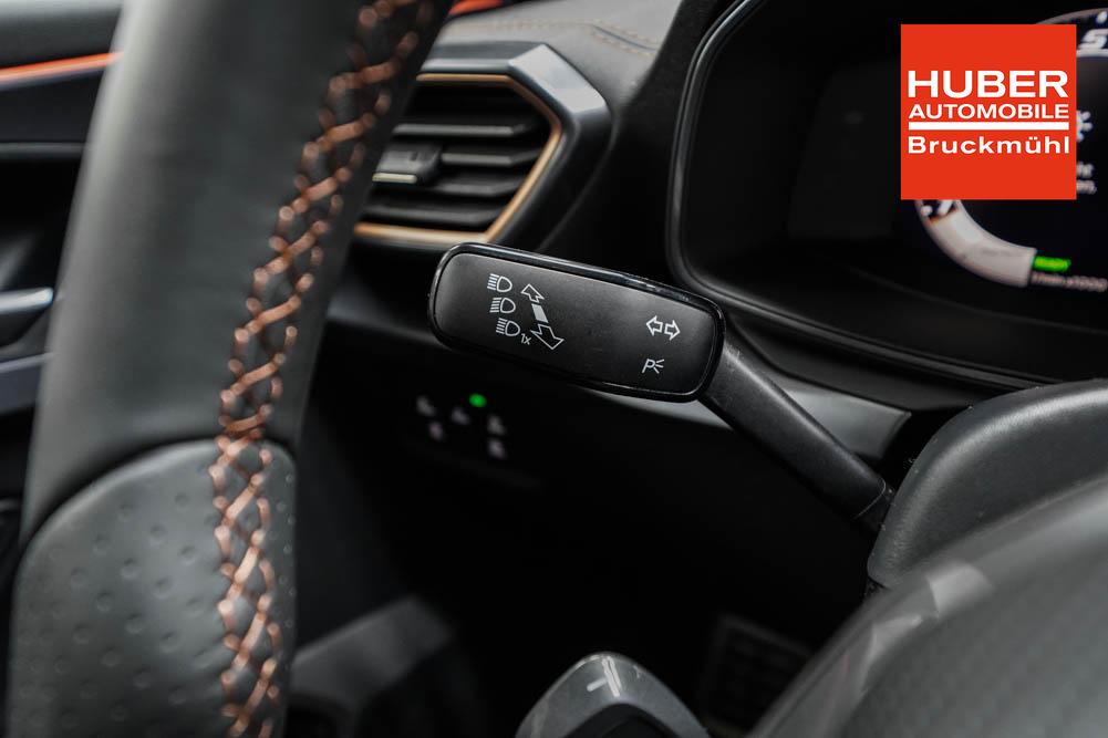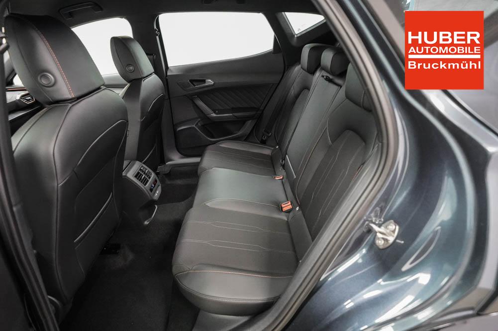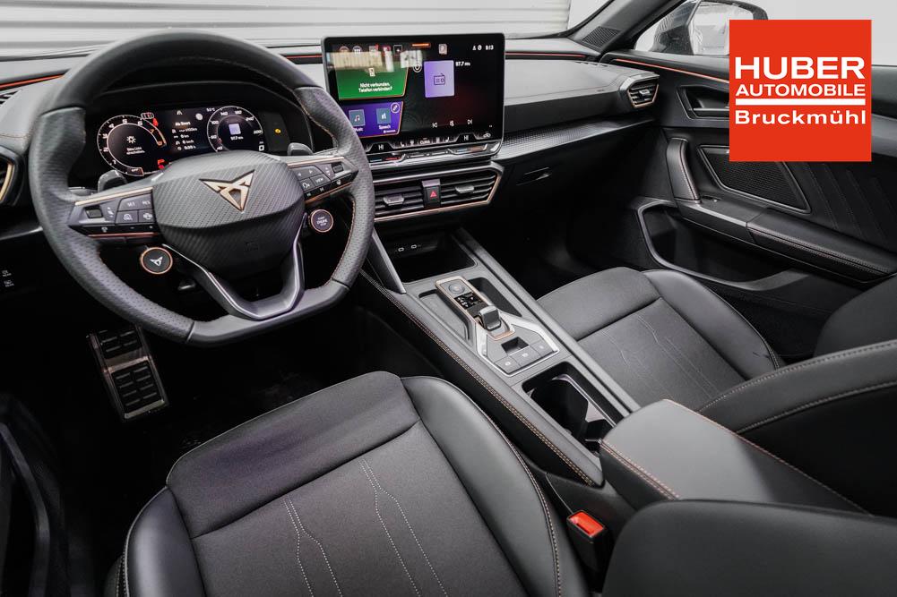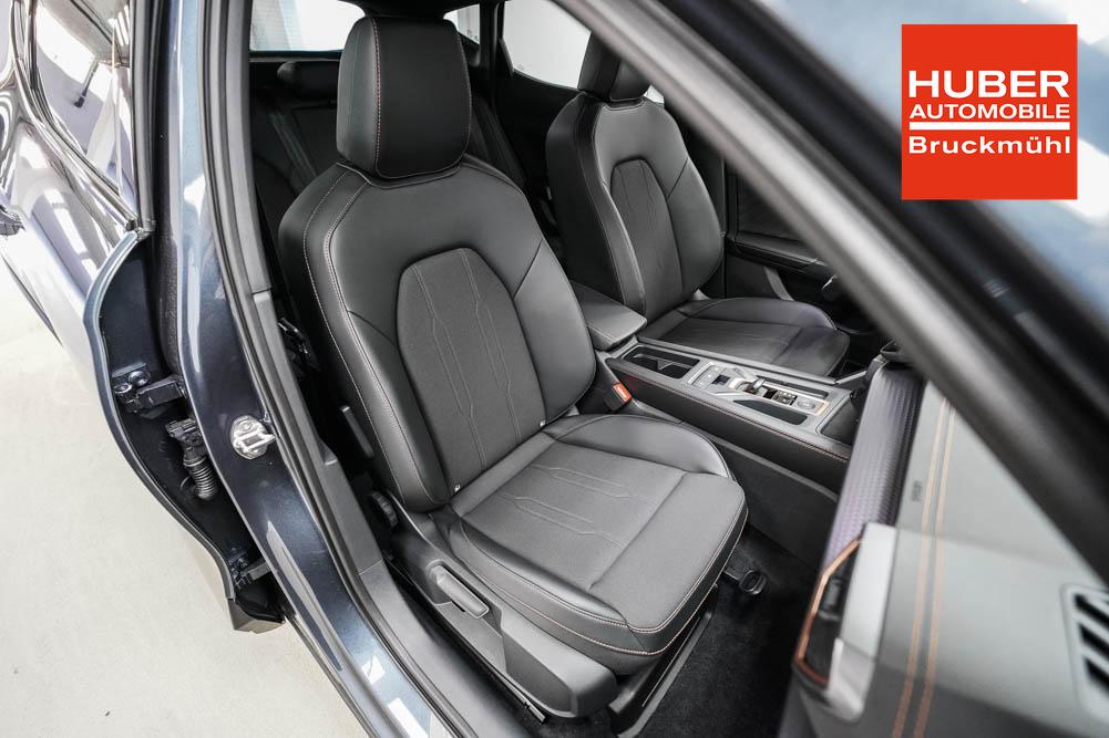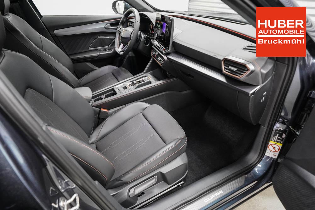 Beifahrersitz höhenverstellbar, Fahrersitz höhenverstellbar, Lederlenkrad, Lendenwirbelstütze, Mittelarmlehne vorne, Sitzbezug Stoff, geteilt umklappbare Rücksitzlehne, Lenkrad höhenverstellbar, Smart Wraparound Interieur Light, Beheizbares Lenkrad, Multifunktionslenkrad, Isofix, Isofix Beifahrersitz, abgedunkelte Scheiben, 18 Zoll Alufelgen , Dachreling schwarz, ABS, Alarmanlage, Außenspiegel elektrisch einstell-/anklappbar, Fensterheber elektrisch, Kopfairbags, Nebelscheinwerfer, Seitenairbags, Servolenkung, Sitzheizung, ESP, Wegfahrsperre, Außenspiegel beheizbar, Beifahrerairbag, Fahrerairbag, Parkpilot hinten, Parkpilot vorne, Reifendruckkontrolle, Regensensor, Lichtsensor, Digital Cockpit, Anhängekupplung schwenkbar, Tempomat Abstand ACC, Spurhalteassistent, Verkehrszeichenerkennung, LED-Scheinwerfer, Tagfahrlicht, Rückfahrkamera, Elektrische Heckklappe inkl. Virtual Pedal, KeylessEntry, StartStopSystem, Innenspiegel automatisch abbl., Müdigkeitswarnsystem, Notrufsystem, Schaltwippen, Klimaautomatik 3-Zonen, Geschwindigkeitsbegrenzer, Android Auto, Apple Carplay, Freisprecheinrichtung, Induktionsladestation, Sprachsteuerung, USB, Radio, Radio DAB, Bluetooth, Bordcomputer, IMMERSIVE by Sennheiser, Cupra Full Link, Full Link, variabler Ladeboden,