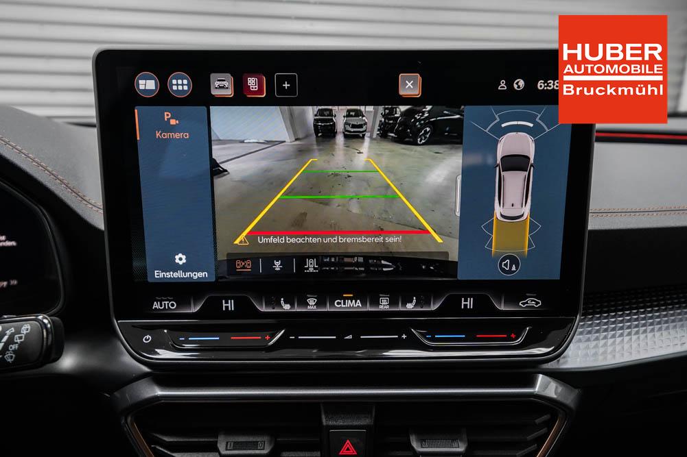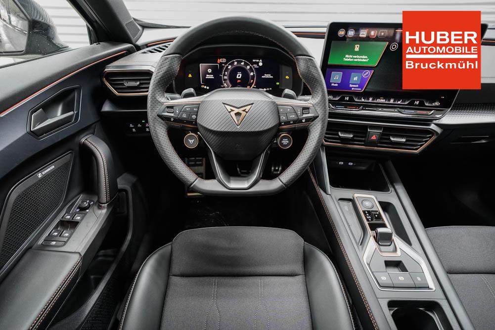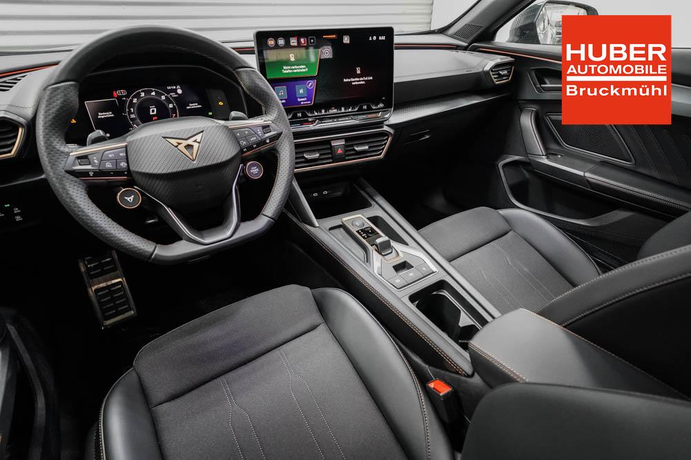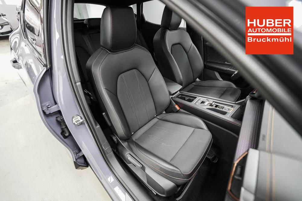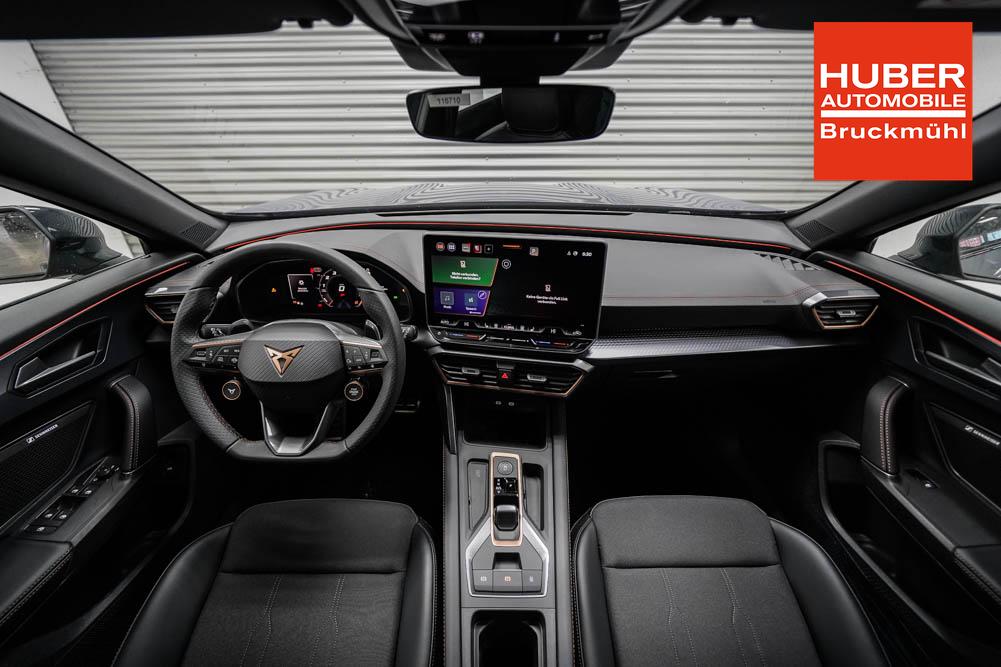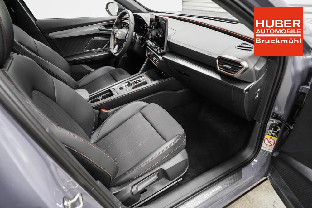 Beifahrersitz höhenverstellbar, Fahrersitz höhenverstellbar, Lederlenkrad, Lendenwirbelstütze, Mittelarmlehne vorne, Sitzbezug Stoff, geteilt umklappbare Rücksitzlehne, Lenkrad höhenverstellbar, Smart Wraparound Interieur Light, Beheizbares Lenkrad, Multifunktionslenkrad, Isofix, Isofix Beifahrersitz, abgedunkelte Scheiben, 18 Zoll Alufelgen , Dachreling schwarz, ABS, Alarmanlage, Außenspiegel elektrisch einstell-/anklappbar, Fensterheber elektrisch, Kopfairbags, Nebelscheinwerfer, Seitenairbags, Servolenkung, Sitzheizung, ESP, Wegfahrsperre, Außenspiegel beheizbar, Beifahrerairbag, Fahrerairbag, Parkpilot hinten, Parkpilot vorne, Reifendruckkontrolle, Regensensor, Lichtsensor, Digital Cockpit, Anhängekupplung schwenkbar, Tempomat Abstand ACC, Spurhalteassistent, Verkehrszeichenerkennung, LED-Scheinwerfer, Tagfahrlicht, Rückfahrkamera, Elektrische Heckklappe inkl. Virtual Pedal, KeylessEntry, StartStopSystem, Innenspiegel automatisch abbl., Müdigkeitswarnsystem, Notrufsystem, Schaltwippen, Klimaautomatik 3-Zonen, Geschwindigkeitsbegrenzer, Android Auto, Apple Carplay, Freisprecheinrichtung, Induktionsladestation, Sprachsteuerung, USB, Radio, Radio DAB, Bluetooth, Bordcomputer, IMMERSIVE by Sennheiser, Cupra Full Link, Full Link, variabler Ladeboden,