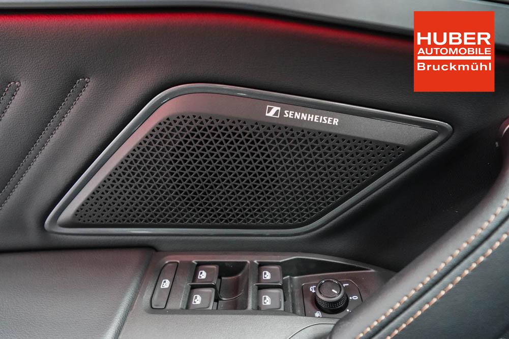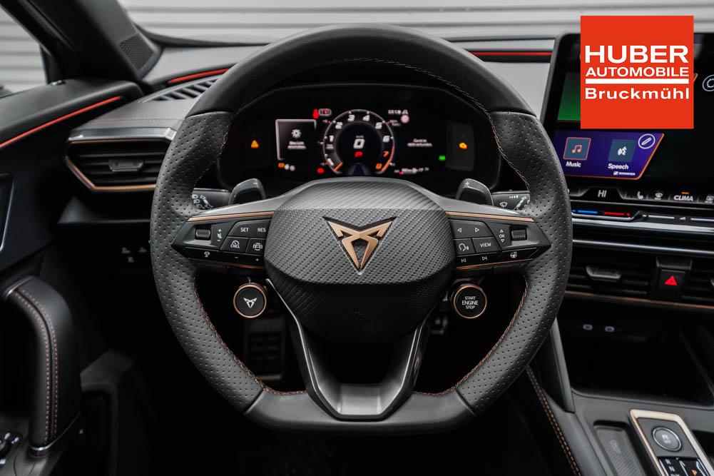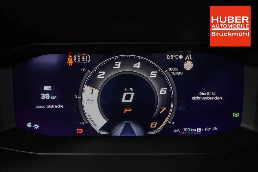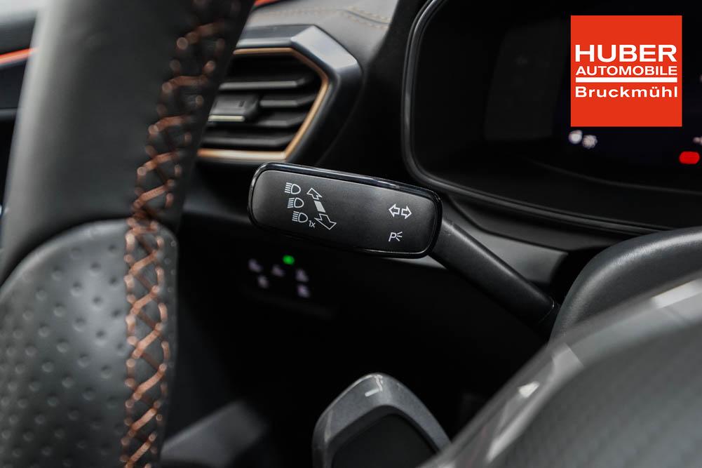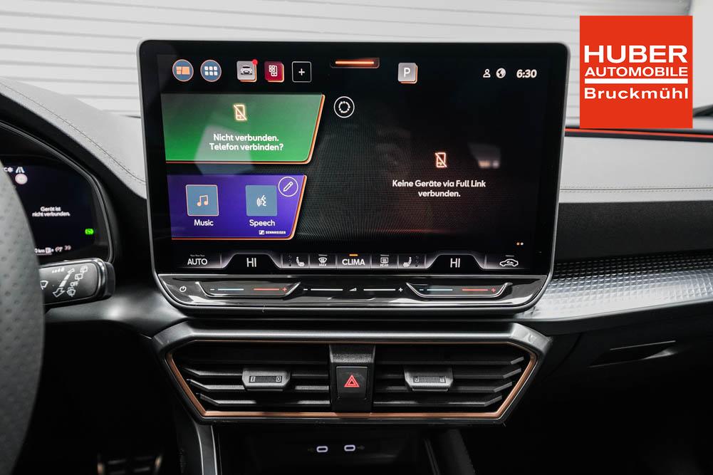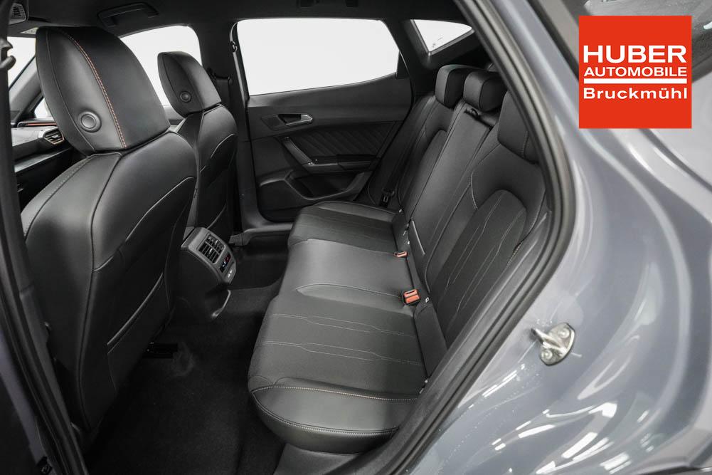 Beifahrersitz höhenverstellbar, Fahrersitz höhenverstellbar, Lederlenkrad, Lendenwirbelstütze, Mittelarmlehne vorne, Sitzbezug Stoff, geteilt umklappbare Rücksitzlehne, Lenkrad höhenverstellbar, Smart Wraparound Interieur Light, Beheizbares Lenkrad, Multifunktionslenkrad, Isofix, Isofix Beifahrersitz, abgedunkelte Scheiben, 18 Zoll Alufelgen , Dachreling schwarz, ABS, Alarmanlage, Außenspiegel elektrisch einstell-/anklappbar, Fensterheber elektrisch, Kopfairbags, Nebelscheinwerfer, Seitenairbags, Servolenkung, Sitzheizung, ESP, Wegfahrsperre, Außenspiegel beheizbar, Beifahrerairbag, Fahrerairbag, Parkpilot hinten, Parkpilot vorne, Reifendruckkontrolle, Regensensor, Lichtsensor, Digital Cockpit, Anhängekupplung schwenkbar, Tempomat Abstand ACC, Spurhalteassistent, Verkehrszeichenerkennung, LED-Scheinwerfer, Tagfahrlicht, Rückfahrkamera, Elektrische Heckklappe inkl. Virtual Pedal, KeylessEntry, StartStopSystem, Innenspiegel automatisch abbl., Müdigkeitswarnsystem, Notrufsystem, Schaltwippen, Klimaautomatik 3-Zonen, Geschwindigkeitsbegrenzer, Android Auto, Apple Carplay, Freisprecheinrichtung, Induktionsladestation, Sprachsteuerung, USB, Radio, Radio DAB, Bluetooth, Bordcomputer, IMMERSIVE by Sennheiser, Cupra Full Link, Full Link, variabler Ladeboden,