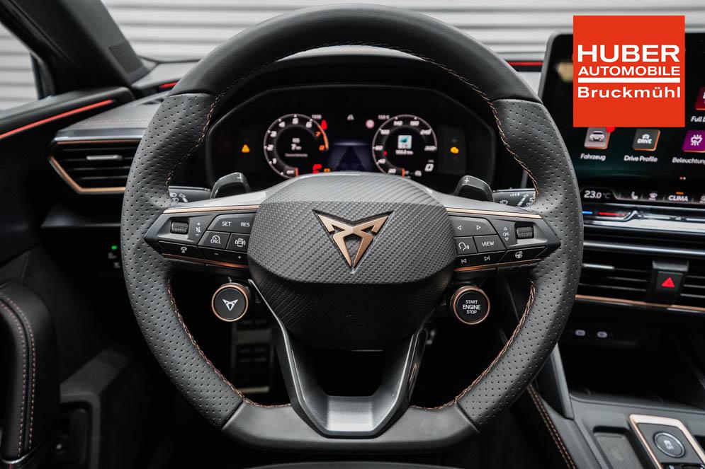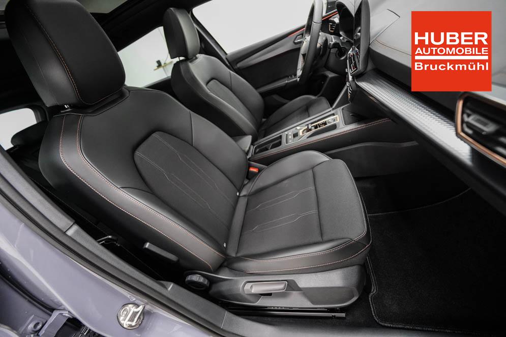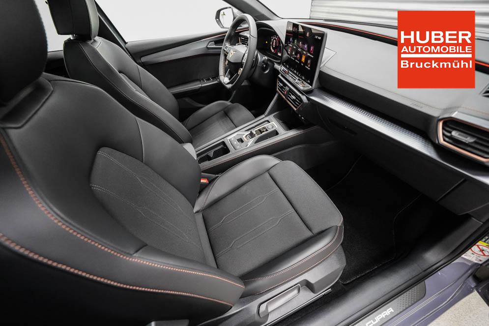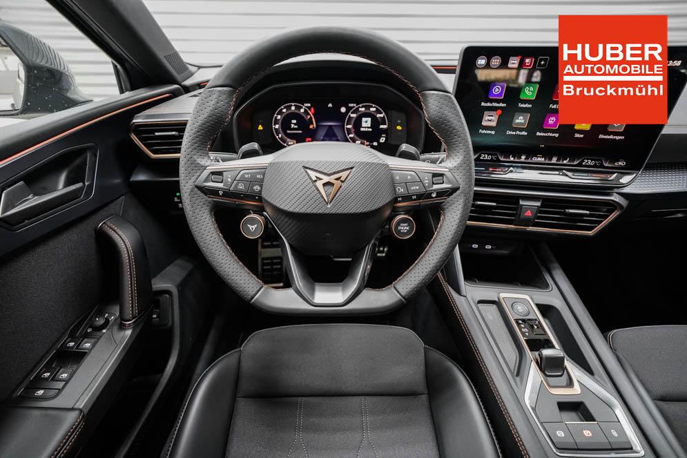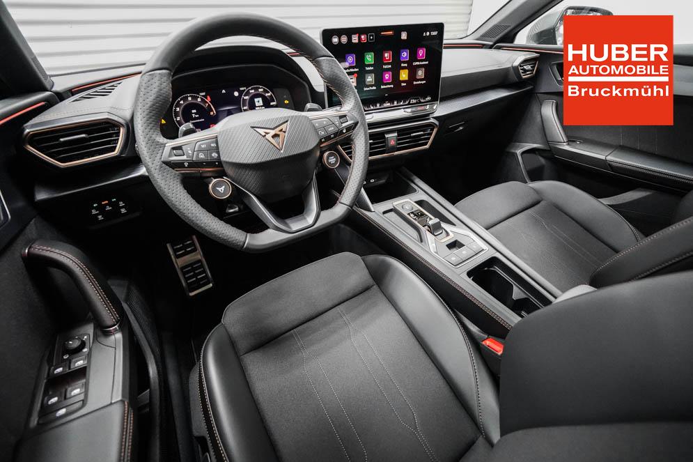 Beifahrersitz höhenverstellbar, Fahrersitz höhenverstellbar, Lederlenkrad, Lendenwirbelstütze, Mittelarmlehne vorne, Sitzbezug Stoff, Gepäckraumabdeckung, geteilt umklappbare Rücksitzlehne, Lenkrad höhenverstellbar, Smart Wraparound Light, Beheizbares Lenkrad, Multifunktionslenkrad mit Satellitenknöpfen, Isofix, Isofix Beifahrersitz, abgedunkelte Scheiben, 18 Zoll Alufelgen Garbi, Dachreling schwarz, ABS, Alarmanlage, Außenspiegel elektrisch anklappbar, Fensterheber elektrisch, Kopfairbags, Nebelscheinwerfer, Schiebedach, Seitenairbags, Servolenkung, Sitzheizung, ESP, Wegfahrsperre, Zentralverriegelung mit Funk, Außenspiegel beheizbar, Beifahrerairbag, Fahrerairbag, Parkpilot hinten, Parkpilot vorne, Reifendruckkontrolle, Regensensor, Lichtsensor, Digital Cockpit, Anhängekupplung schwenkbar, Tempomat Abstand ACC, Fernlichtassistent, Verkehrszeichenerkennung, Full LED Scheinwerfer, Tagfahrlicht LED, Pannenset, Rückfahrkamera, Park-Assistent, Panoramadach, Elektrische Heckklappe inkl. Virtual Pedal, KeylessEntry, StartStopSystem, Innenspiegel automatisch abbl., Müdigkeitswarnsystem, Notrufsystem, Schaltwippen, Klimaautomatik 3-Zonen, Geschwindigkeitsbegrenzer, Android Auto, Apple Carplay, Freisprecheinrichtung, Induktionsladestation, Sprachsteuerung, USB, Radio, Radio DAB, Bluetooth, Bordcomputer, Cupra Full Link, variabler Ladeboden,