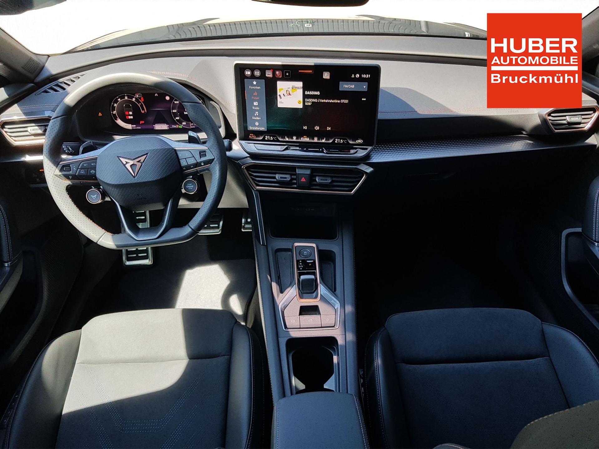 ACC bis 210km/h, Fernlichtassistent, 3-Zonen-Climatronic, Digital Cockpit Plus, Induktive Ladefunktion, Wireless Full Link,  Supersport-Multifunktionslederlenkrad beheizbar, LED-Tagfahrlicht, 230V Steckdose im Kofferraum, 2* USB-C vorne 2* USB-C hinten, Fahrer- und Beifahrerairbag, Außenspiegel elektrisch verstell- , beheiz- und anklappbar, Coming Home-/ Leaving Home Funktion, Dachhimmel schwarz, XDS, Front Assist, Innenspiegel autom. abblendbar, ISOFIX, Mittelarmlehne vorne, abgedunkelte Seitenscheiben ab der B-Säule, Sprachsteuerung, Cupra Drive Profil, Parksensoren vorne und hinten, Licht und Regensensor, DAB, el. Handbremse inkl. auto Hold, el. Fensterheber vorne und hinten, Gepäckraumabdeckung, LED- Nebelscheinwerfer, LED-Rückleuchten mit dynamischen Blinker, Mittelarmlehne hinten, Rücksitzlehne geteilt umklappbar, Reifendruckkontrolle, Start-Stopp- Funktion, Tank 45l, Verkehrszeichenerkennung, el. Wegfahrsperre, eCall, uvm.