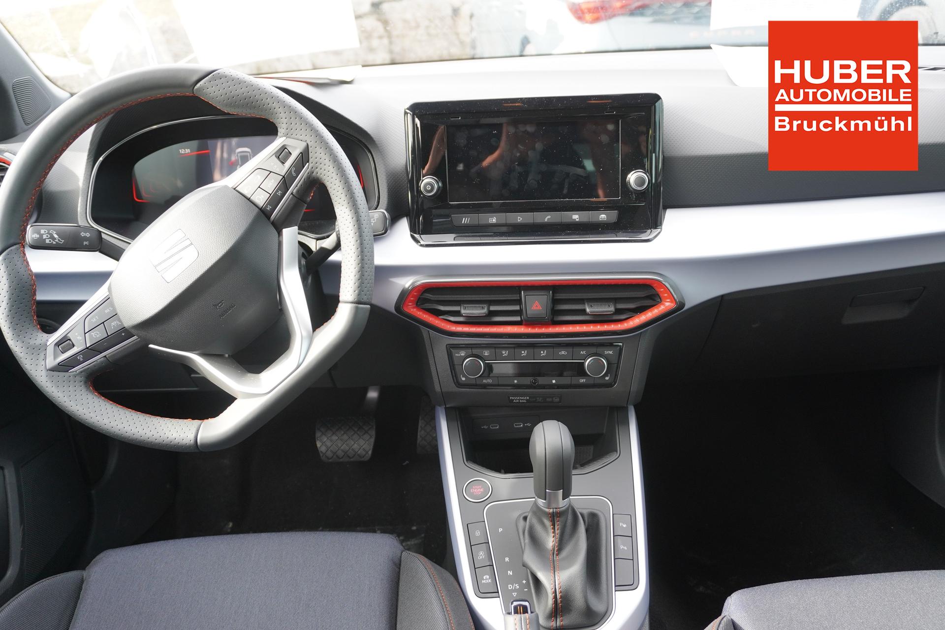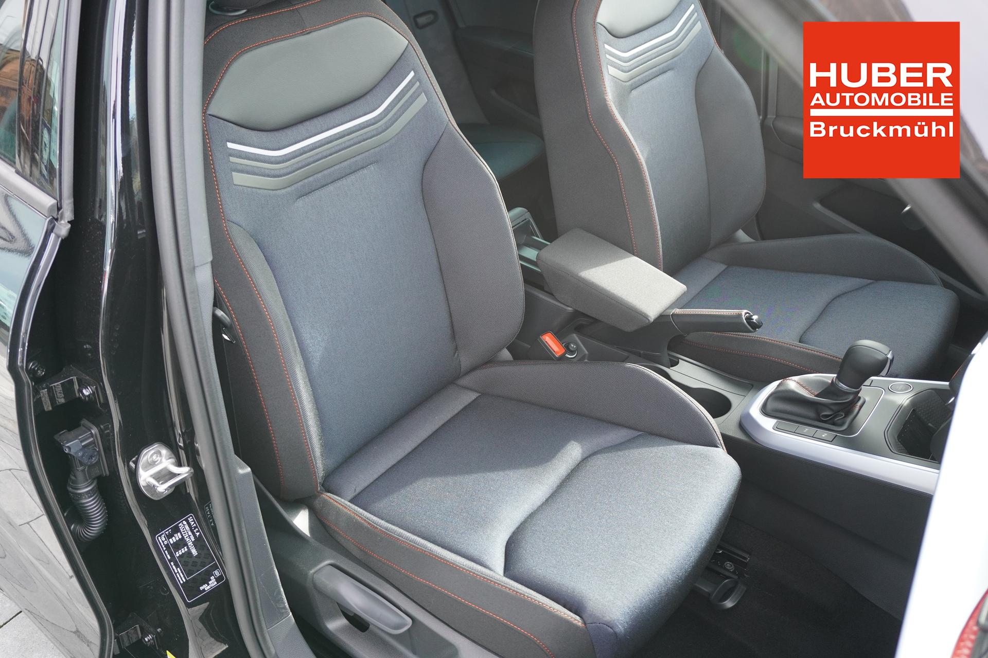 3. Bremsleuchte, Airbag Beifahrerseite abschaltbar, Airbag Fahrer-/Beifahrerseite, Antriebs-Schlupfregelung (ASR), Außenspiegel elektr. verstell-, heiz- und anklappbar, beide, Außentemperaturanzeige, Bordcomputer, Bremsassistent, Dachhimmel schwarz, Dachreling, Einschaltautomatik für Fahrlicht, Fahrassistenz-System: Berganfahr-Assistent (Hill-Holder), Fahrassistenz-System: Fahrprofilauswahl (SEAT Drive Profile), Fahrassistenz-System: Multikollisionsbremse (Multi Collision Brake), Fahrassistenz-System: Müdigkeitserkennung, Fahrassistenz-System: Spurhalteassistent, Fahrassistenz-System: Umfeldbeobachtungssystem (Front assist) mit City-Notbremsfunktion, Heckleuchten LED, Heckscheibe heizbar, Heckscheibenwischer, Innenraumfilter: Pollenfilter, Isofix-Aufnahmen für Kindersitz, Karosserie: 5-türig, Kopf-Airbag-System, Kopfstützen hinten, Kopfstützen vorn, Laderaumboden variabel und herausnehmbar, Lenkrad (Leder) mit Multifunktion, Lenksäule (Lenkrad) höhenverstellbar, Lenksäule (Lenkrad) verstellbar, LM-Felgen, Motor 1,0 Ltr. - 81 kW TSI, Notrufsystem, Otto-Partikelfilter (OPF), Radstand 2566 mm, Reifendruck-Kontrollsystem, Reifenkontroll-Anzeige, Rücksitzlehne geteilt/klappbar (1/3-2/3), Schadstoffarm nach Abgasnorm Euro 6d, Scheinwerfer LED, SEAT Media-System, SEAT Media-System Touch Colour, Seitenairbag, Sitze vorn höhenverstellbar, Sportsitze vorn, Sprachsteuerungs-System, Start/Stop-Anlage, Steckdose (12V-Anschluß) vorn, Stoßfänger FR-Design, Türgriffe außen lackiert, Wärmeschutzverglasung