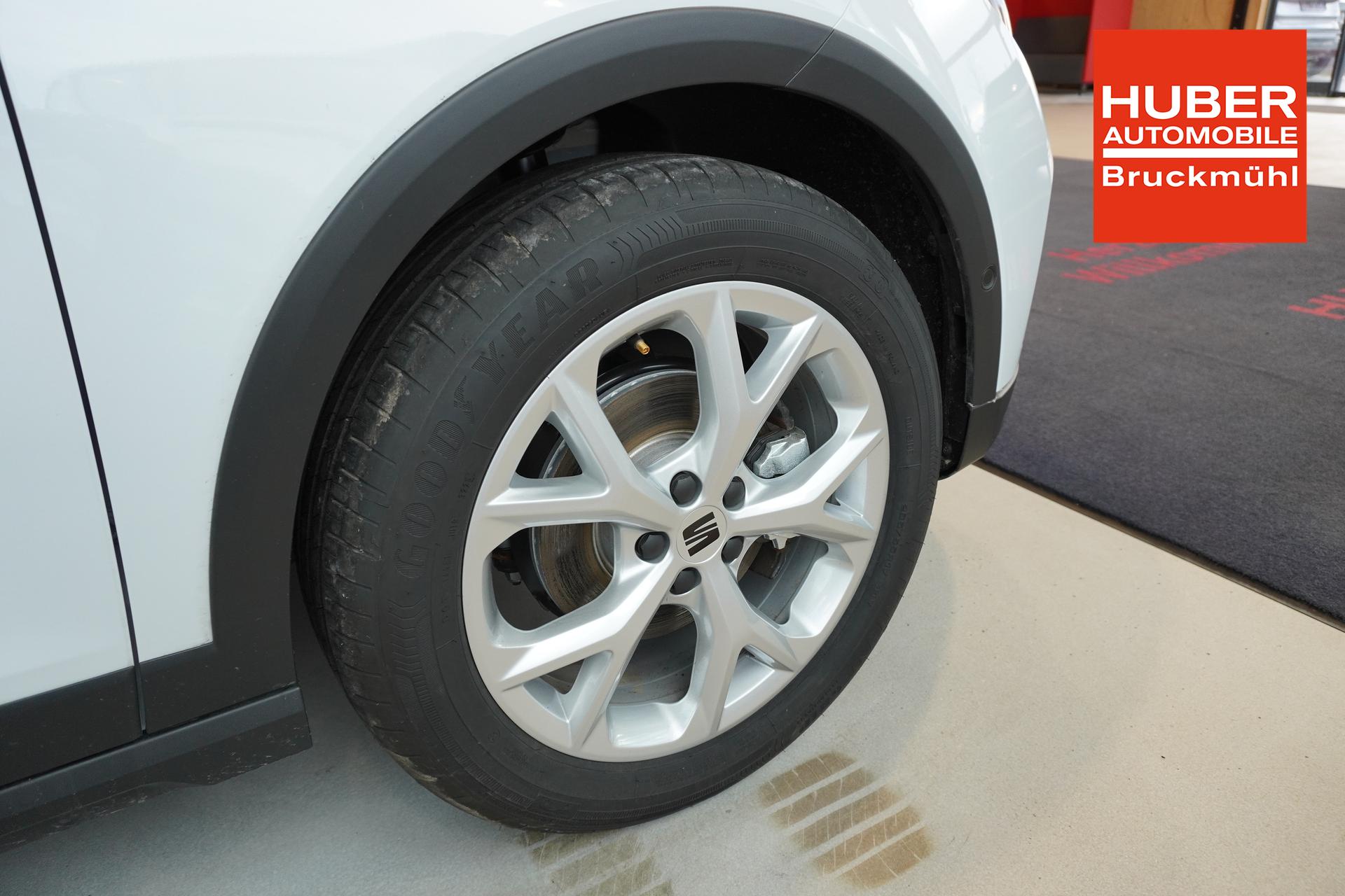 3. Bremsleuchte, Airbag Beifahrerseite abschaltbar, Airbag Fahrer-/Beifahrerseite, Antriebs-Schlupfregelung (ASR), Außenspiegel elektr. verstell-, heiz- und anklappbar, beide, Außentemperaturanzeige, Bordcomputer, Bremsassistent, Dachhimmel schwarz, Dachreling, Einschaltautomatik für Fahrlicht, Fahrassistenz-System: Berganfahr-Assistent (Hill-Holder), Fahrassistenz-System: Fahrprofilauswahl (SEAT Drive Profile), Fahrassistenz-System: Multikollisionsbremse (Multi Collision Brake), Fahrassistenz-System: Müdigkeitserkennung, Fahrassistenz-System: Spurhalteassistent, Fahrassistenz-System: Umfeldbeobachtungssystem (Front assist) mit City-Notbremsfunktion, Heckleuchten LED, Heckscheibe heizbar, Heckscheibenwischer, Innenraumfilter: Pollenfilter, Isofix-Aufnahmen für Kindersitz, Karosserie: 5-türig, Kopf-Airbag-System, Kopfstützen hinten, Kopfstützen vorn, Laderaumboden variabel und herausnehmbar, Lenkrad (Leder) mit Multifunktion, Lenksäule (Lenkrad) höhenverstellbar, Lenksäule (Lenkrad) verstellbar, LM-Felgen, Motor 1,0 Ltr. - 81 kW TSI, Notrufsystem, Otto-Partikelfilter (OPF), Radstand 2566 mm, Reifendruck-Kontrollsystem, Reifenkontroll-Anzeige, Rücksitzlehne geteilt/klappbar (1/3-2/3), Schadstoffarm nach Abgasnorm Euro 6d, Scheinwerfer LED, SEAT Media-System, SEAT Media-System Touch Colour, Seitenairbag, Sitze vorn höhenverstellbar, Sportsitze vorn, Sprachsteuerungs-System, Start/Stop-Anlage, Steckdose (12V-Anschluß) vorn, Stoßfänger FR-Design, Türgriffe außen lackiert, Wärmeschutzverglasung